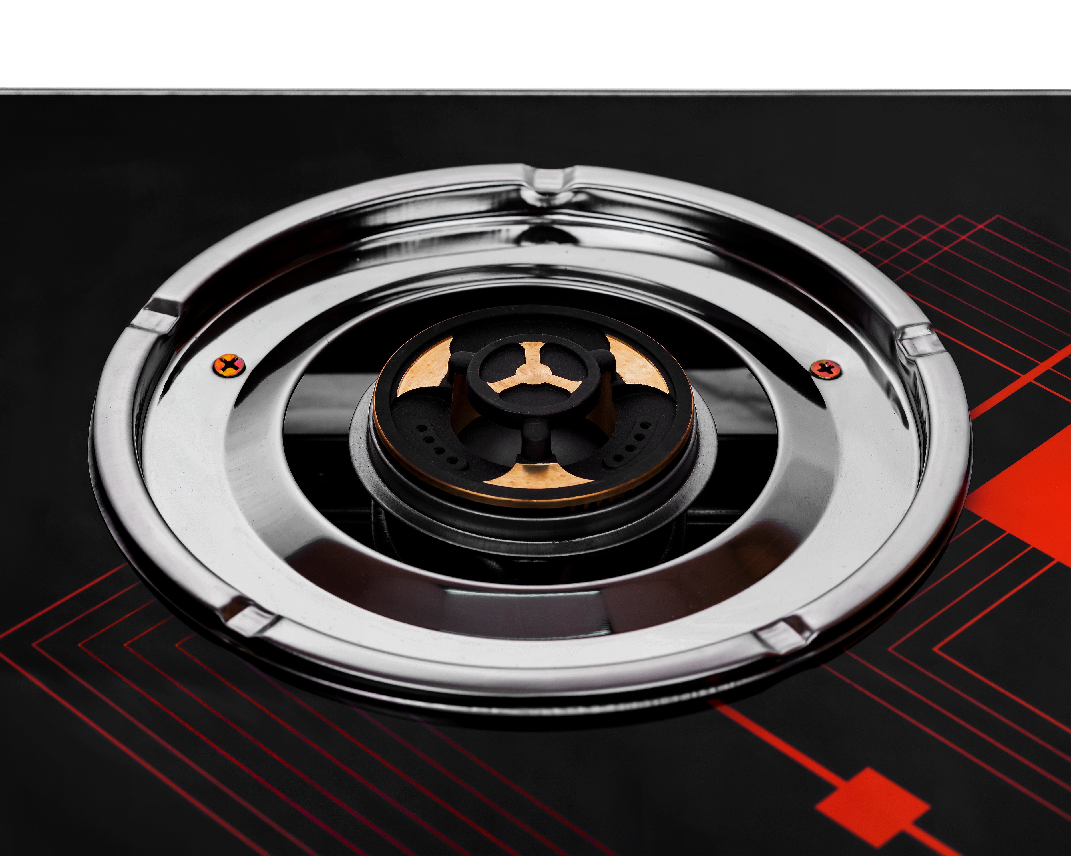 * Mặt kiếng cao cấp chịu lực, chịu nhiệt, thiết kế hoa văn sang trọng; - Thân bếp bằng inox, cao 100 mm; - Kiềng thép sơn tĩnh điện, có chắn gió; - Điếu loe
