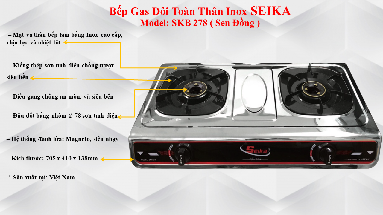 ✨Bếp Gas Đôi Toàn Thân Inox Seika SKB278 - Hàng Chính Hãng