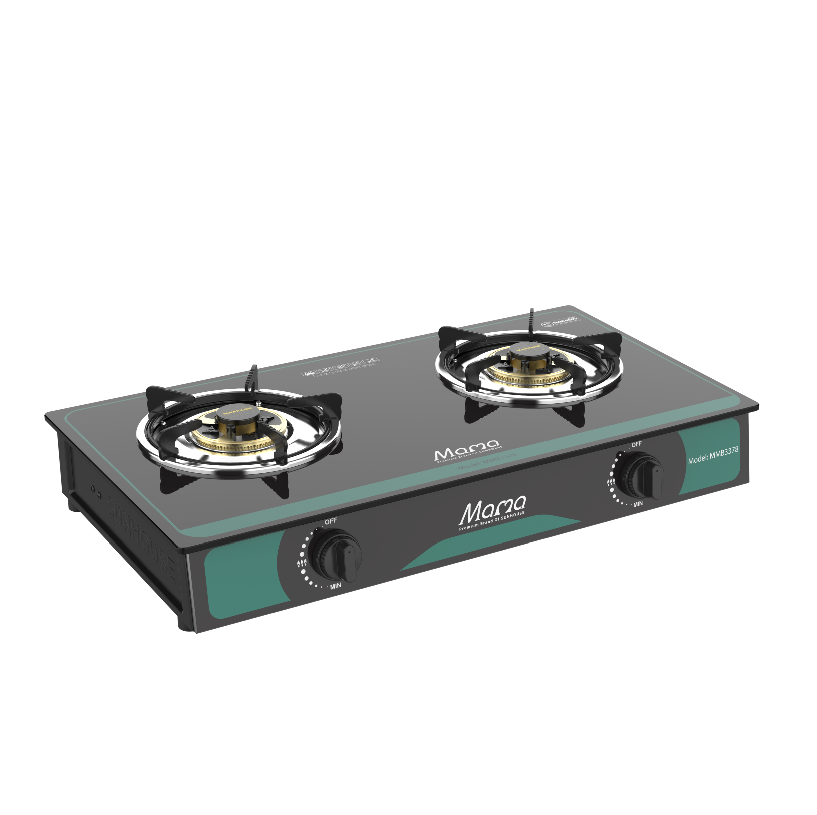 Bếp gas dương kính SUNHOUSE MMB3378 có 2 vùng đun, điều khiển lửa to, nhỏ bằng núm vặn tiện lợi, chế biến được nhiều món ăn cùng lúc. Mặt kính với gam màu đen trang nhã, sang trọng kết hợp cùng hoạ tiết kẻ sọc tinh tế.