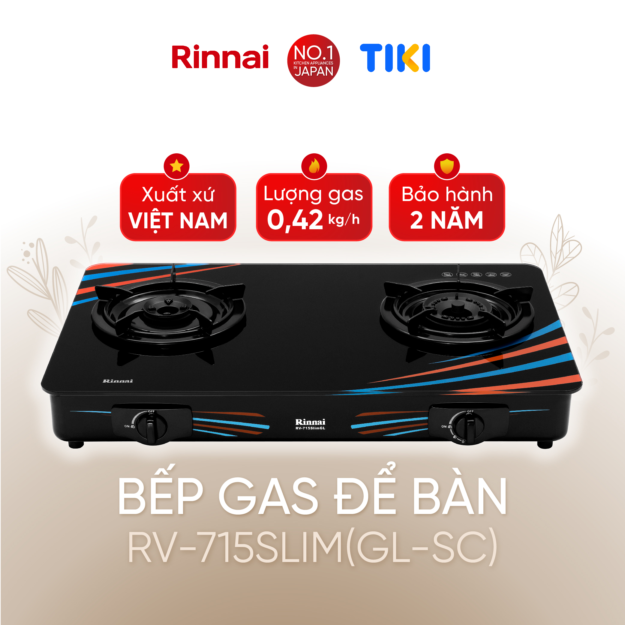 Bếp gas dương Rinnai RV-715Slim(GL-SC) mặt bếp kính và kiềng bếp men - Hàng chính hãng.   THÔNG TIN CHI TIẾT SẢN PHẨM Bếp gas dương Rinnai RV-715Slim(GL-SC) là sản phẩm hàng đầu của thương