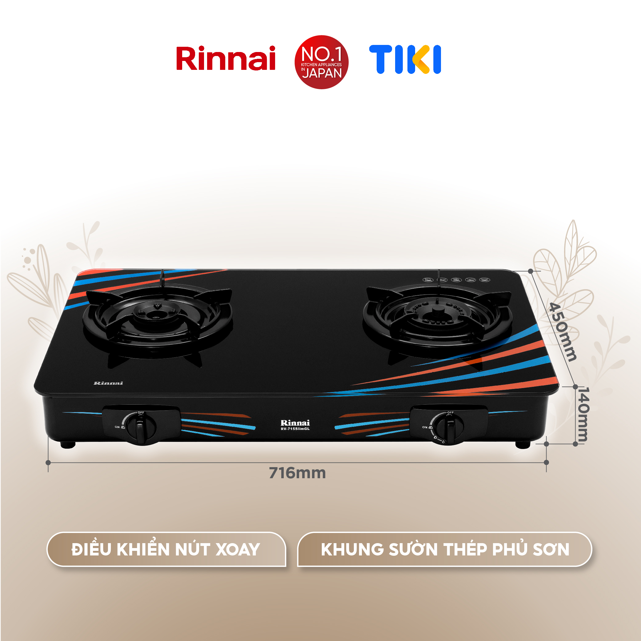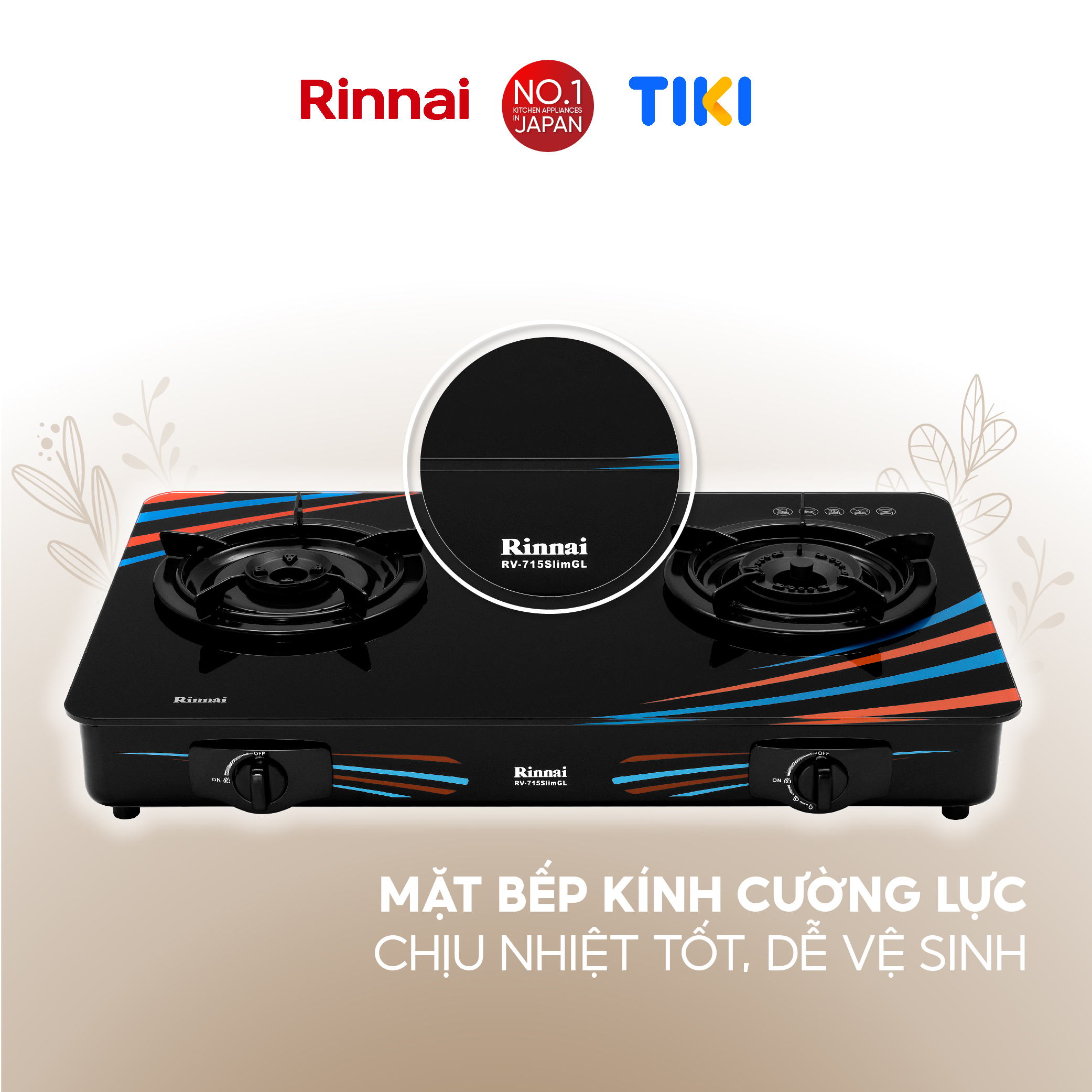 Bếp gas dương Rinnai RV-715Slim(GL-SC) mặt bếp kính và kiềng bếp men - Hàng chính hãng.