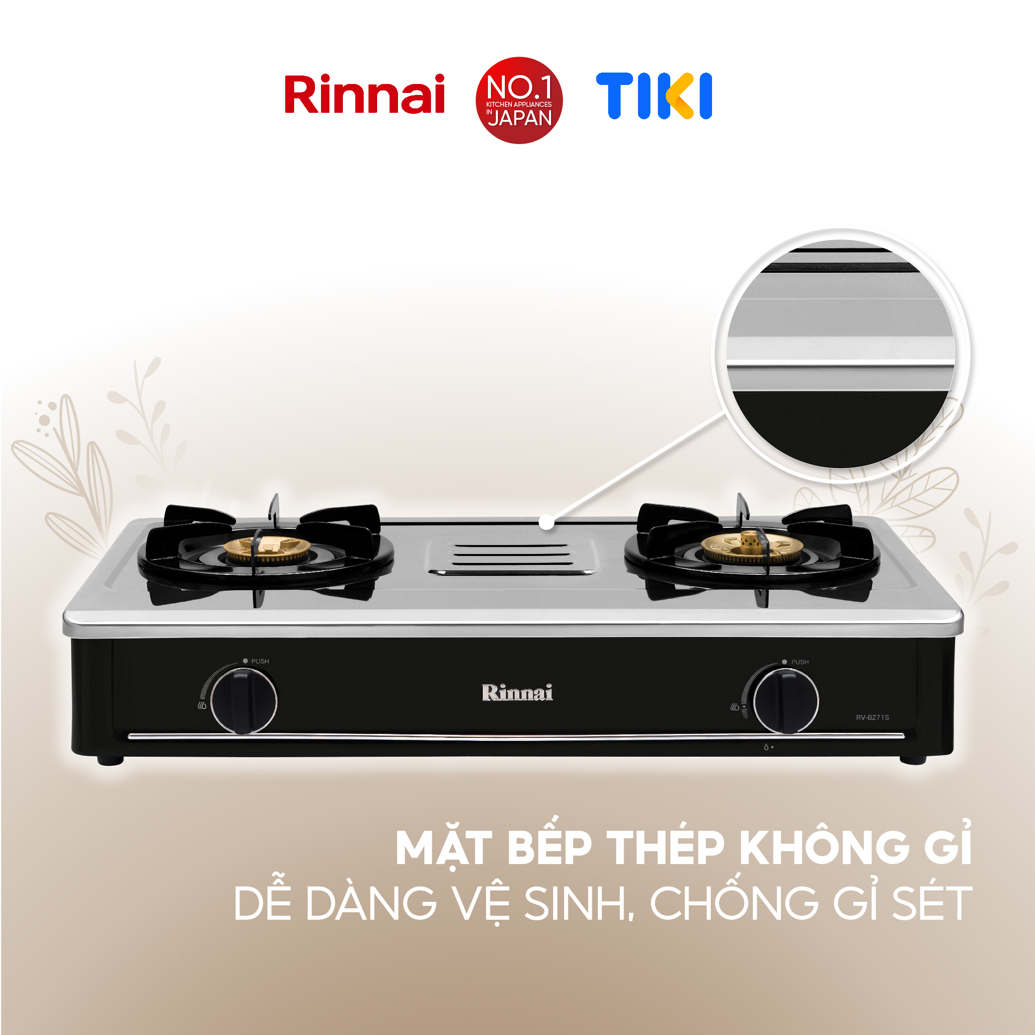RINNAI chân thành cảm ơn bạn đã quan tâm đến sản phẩm: Bếp gas dương Rinnai RV-B271SB(S) mặt bếp inox và kiềng bếp men - Hàng chính hãng.