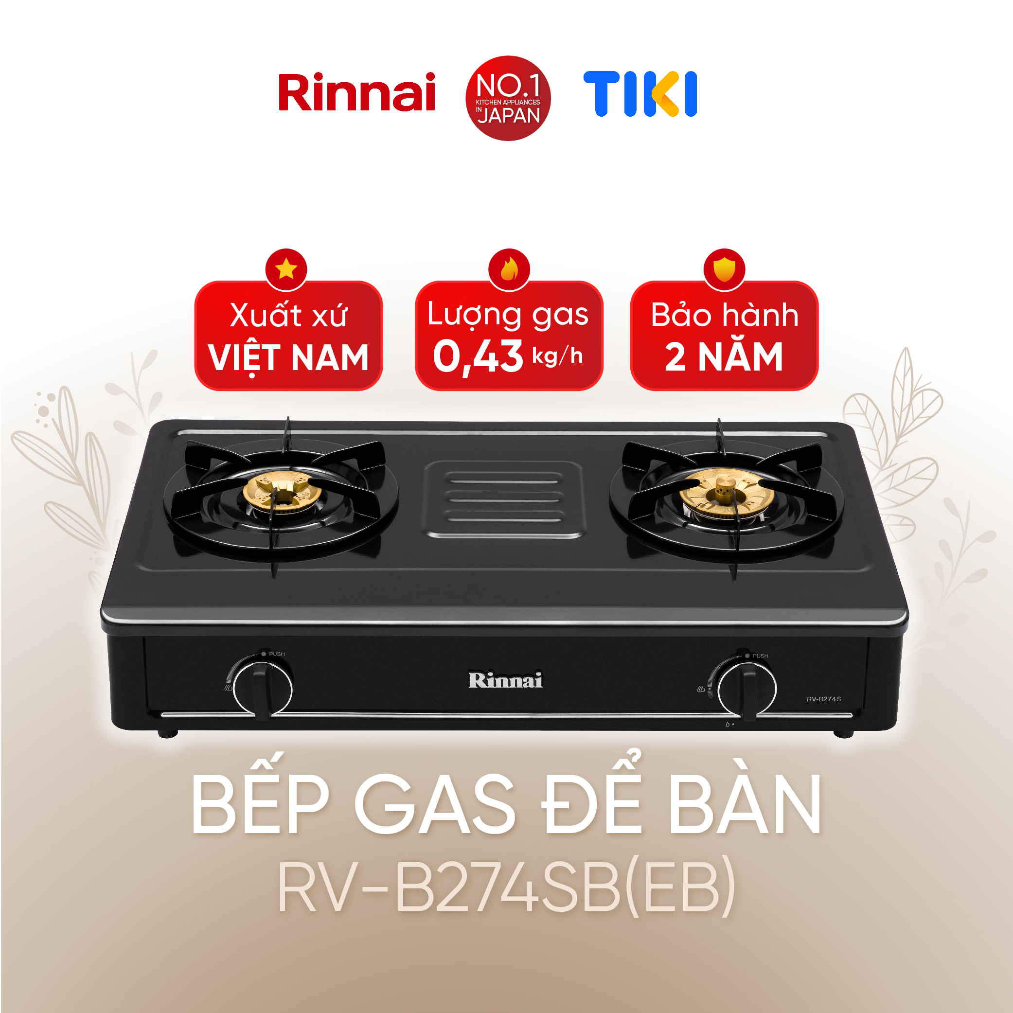 RINNAI chân thành cảm ơn bạn đã quan tâm đến sản phẩm: Bếp gas dương Rinnai RV-B274SB(EB) mặt bếp men và kiềng bếp men - Hàng chính hãng.