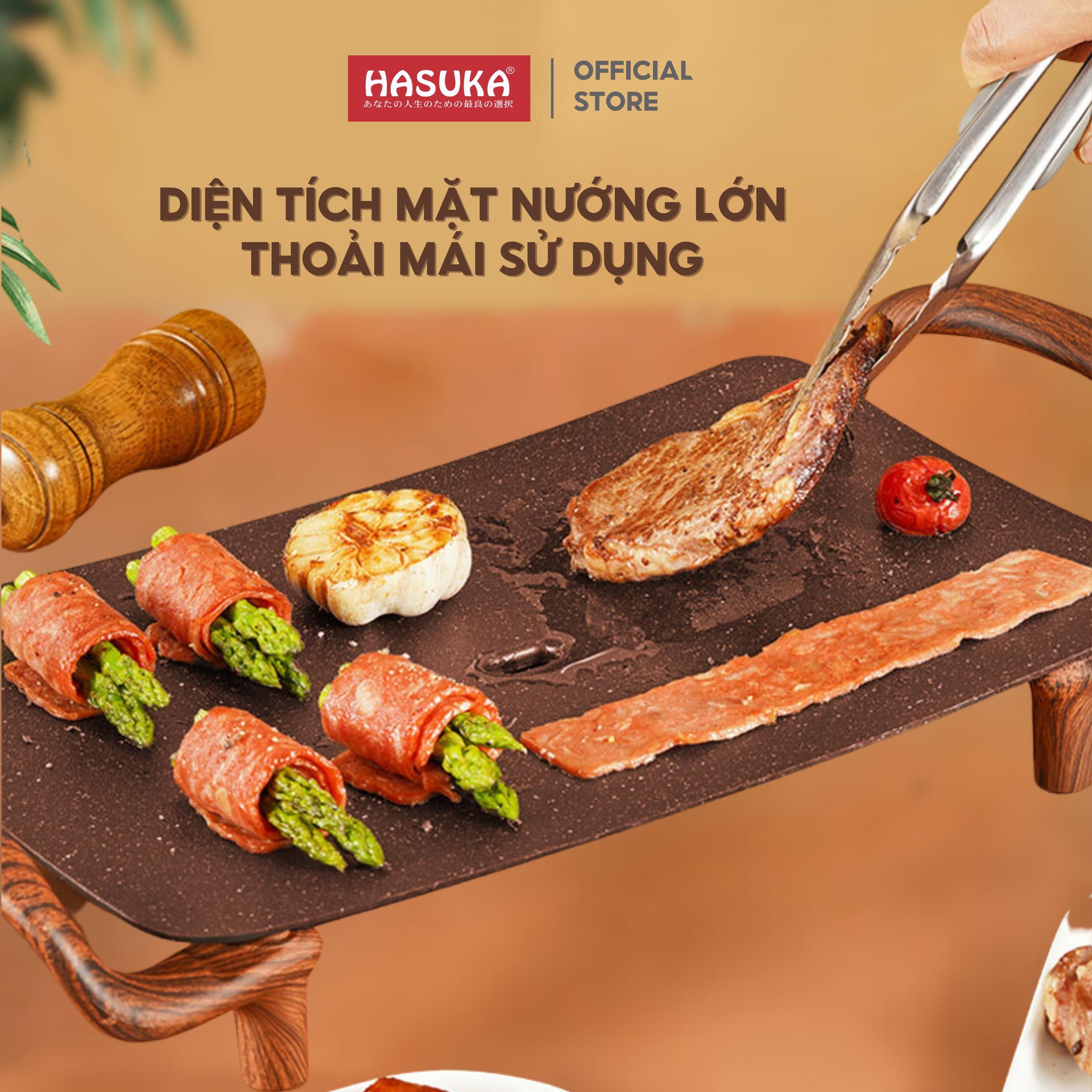 Bếp lẩu nướng đa năng HASUKA HSK-366LN 2in1 nướng lẩu đồng thời, lòng nồi chống dính Ceramic an toàn