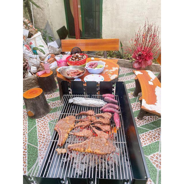 Bếp nướng than hoa BBQ ngoài trời - Kích thước: 62 x 22,5x6.5 cm - Chất liệu: thép + inox chống gỉ. ĐẶC ĐIỂM NỔI BẬT: – Sử dụng được than hoa và than không