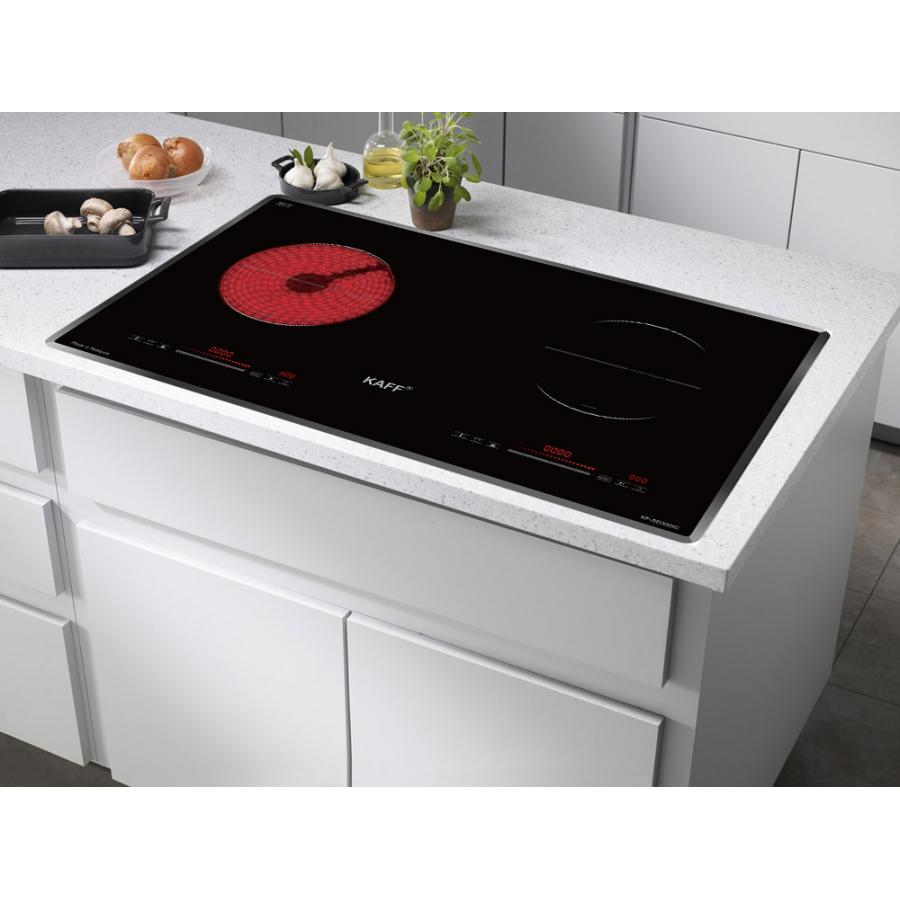 Mua tại TiktokBếp từ đôi hồng ngoại cảm ứng KAFF KF-SD300IC thuộc dòng bếp điện từ cao cấp của thương hiệu thiết bị nhà bếp nổi tiếng tại Đức KAFF nhập khẩu nguyên chiếc từ MALAYSIA, là sự kết hợp hoàn hảo giữa 1 bên bếp từ (sử dụng các bộ nồi chảo inox từ, tiết kiệm điện và đun nấu nhanh hơn) và 1 bên bếp điện hồng ngoại (không kén nồi và có thể nướng trực tiếp trên bề mặt bếp) giúp cho cuộc sống của bạn thuận tiện hơn. Mẫu Bếp từ đôi hồng ngoại KAFF KF-SD300IC rất được ưa chuộng ráp cho các công trình, căn hộ cao cấp hiện nay Bếp từ đôi hồng ngoại cảm ứng KAFF KF-SD300IC được sản xuất theo công nghệ hiện đại tiên tiến nhất hiện nay với vô vàn những tính năng ưu việt, thông minh hơn bếp thông thường chắc chắn Bếp từ đôi hồng ngoại cao cấp cảm ứng nhập khẩu KAFF sẽ giúp bạn hoàn thiện món ăn cho gia đình nhanh chóng, rất phù hợp cho gia đình nhiều thành viên và những bà nội trợ bận rộn. Mặt kính crystal siêu bền, chịu lực chịu sốc nhiệt Bếp từ đôi hồng ngoại cảm ứng KAFF KF-SD300IC được trang bị mặt kính Crytal nhập khẩu trực tiếp có khả năng chịu lực, chống sốc nhiệt 800 độ C, truyền nhiệt tốt và chống xước, chống bám bụi mang lại hiệu suất đun nấu cao, Tuổi thọ sử dụng lâu dài Bền bỉ cao. Nhờ những tính năng vượt trội trên mà rất nhiều thương hiệu bếp nổi tiếng trên thế giới đều tin dùng mặt kính này trong sản xuất bếp điện hoặc bếp từ cao cấp. Một trong những yếu tố quan trọng nhất tạo nên chiếc bếp điện từ hoàn hảo là mặt kính bếp. Chất liệu mặt kính là một trong những yếu tố hàng đầu mà người tiêu dùng quan tâm khi mua bếp từ. Bếp từ đôi hồng ngoại cảm ứng KAFF KF-SD300IC được nhà sản xuất lựa chọn mặt kính Crystal chống sốc nhiệt và chống bám bụi tốt. Không chỉ vậy, tính tiện lợi của mặt kính còn được thể hiện ở việc dễ dàng vệ sinh mặt kính chỉ với một chiếc khăn ẩm và nước lau kính chuyên dụng. Thật vậy, mỗi một bộ phận cấu tạo nên chiếc bếp từ đều được sản xuất và thiết kế theo quản lý chất lượng từ GERMANY để đảm bảo sản phẩm không những bền bỉ, an toàn mà còn tiện lợi, thông minh. Sản phẩm được bảo hành 60 tháng (05 năm) nên người tiêu dùng hoàn toàn yên tâm khi sử dụng. Bếp 2 lò 1 bên từ, 1 bên điện hồng ngoại cảm ứng Sản phẩm Bếp từ đôi hồng ngoại cảm ứng KAFF KF-SD300IC này gồm 2 lò, là sự kết hợp hoàn hảo giữa 1 bên bếp từ sử dụng các bộ nồi chảo inox từ, tiết kiệm điện và đun nấu nhanh hơn và 1 bên bếp điện hồng ngoại không kén nồi và có thể nướng trực tiếp trên bề mặt bếp, quá tuyệt vời phải không nào, Chắc chắn sản phẩm sẽ mang đến sự lựa chọn hoàn hảo cho bà nội trợ hiện đại, giúp nấu ăn nhanh hơn và tiết kiệm thời gian. Sản phẩm hoàn hảo không kén nồi và tiết kiệm điện với 1 bên là từ và 1 bên là điện hồng ngoại Bạn dễ dàng thao tác trên màn điều khiển cảm ứng siêu nhạy và dễ sử dụng. Bếp từ đôi hồng ngoại cảm ứng KAFF KF-SD300IC được trang bị màn hình LED hiện đại hiển thị các chức năng nấu nướng khi được chọn. Nhờ vậy, chỉ cần đọc qua cách hướng dẫn sử dụng hoặc xem chức năng hiển thị trên bề mặt bếp là bạn có thể thực hiện thành thạo ngay vì các chức năng hiển thị rõ ràng, thao tác đơn giản. Bếp tích hợp tính năng hiện đại và an toàn nhất Nếu bạn đang cần kiếm tìm bếp từ an toàn và hiện đại nhất thì Bếp từ đôi hồng ngoại cảm ứng KAFF KF-SD300IC chính là sản phẩm phù hợp nhu cầu của bạn khi sở hữu những tính năng an toàn sau: Chức năng nấu nhanh Booster Chức năng nấu nhanh Booster hiện đại nay đã có trong Bếp từ đôi hồng ngoại cảm ứng KAFF KF-300IC. Chức năng này cho phép người dùng kích hoạt công suất max, rút ngắn thời gian đun nấu. Đặc biệt, bếp có khả năng tự động chia sẻ công suất giữa hai bếp, giúp bảo vệ mạch điện, tránh quá tải. Tính năng này được người dùng đánh giá khá cao về độ bền cũng như độ an toàn của sản phẩm. Bo mạch IGBT Siemen, Inveter tiết kiệm điện, chất lượng 100% từ Đức Một chiếc bếp từ tốt nhất không chỉ chú trọng chất lượng mặt kính mà mâm từ và hệ thống bảng mạch điều khiển cũng đóng góp vai trò quan trọng trong hiệu quả sử dụng. Sản phẩm Bếp từ đôi KAFF cao cấp chỉ sử dụng những linh kiện hiện đại bậc nhất đến từ những thương hiệu nổi tiếng trên thế giới. Đối với Bếp từ đôi hồng ngoại cảm ứng KAFF KF-SD300IC , KAFF sử dụng mâm từ, hệ thống bảng mạch điều khiển IGBT Siemen 100% Thương hiệu từ Đức, Chức năng Inveter tiết kiệm điện đảm bảo hiệu quả sử dụng cao và độ bền bỉ của sản phẩm. Thiết kế sang trọng: Sản phẩm được thiết kế theo kiểu dáng sang trọng, hiện đại, giúp làm đẹp không gian phòng bếp. ==> Cơ hội mua bếp từ đôi cao cấp, Thi