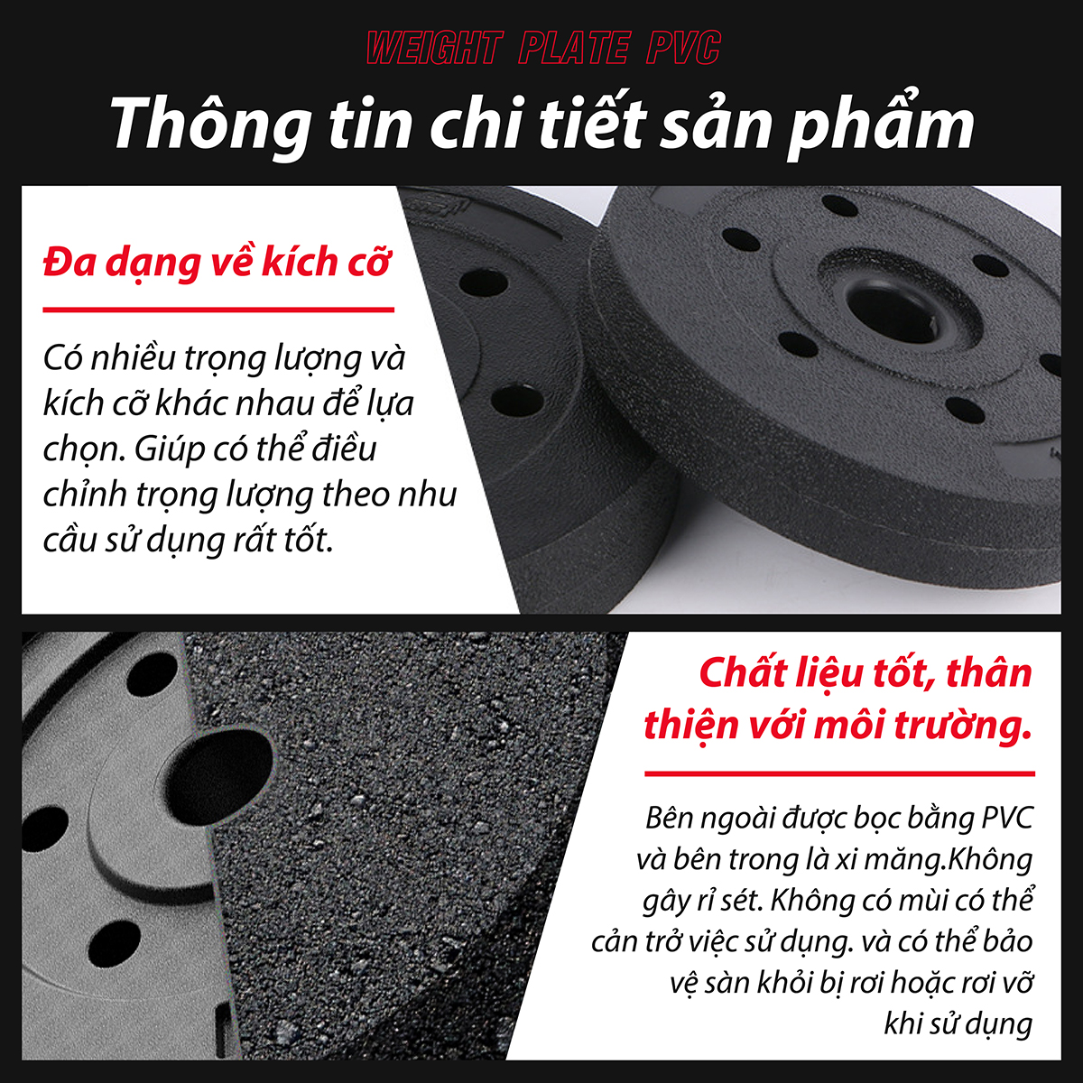 - Trên mỗi miếng tạ có ghi rõ trọng lượng tạ, giúp người tập không bị nhầm lẫn khi chọn tạ để tập. Công dụng sản phẩm: