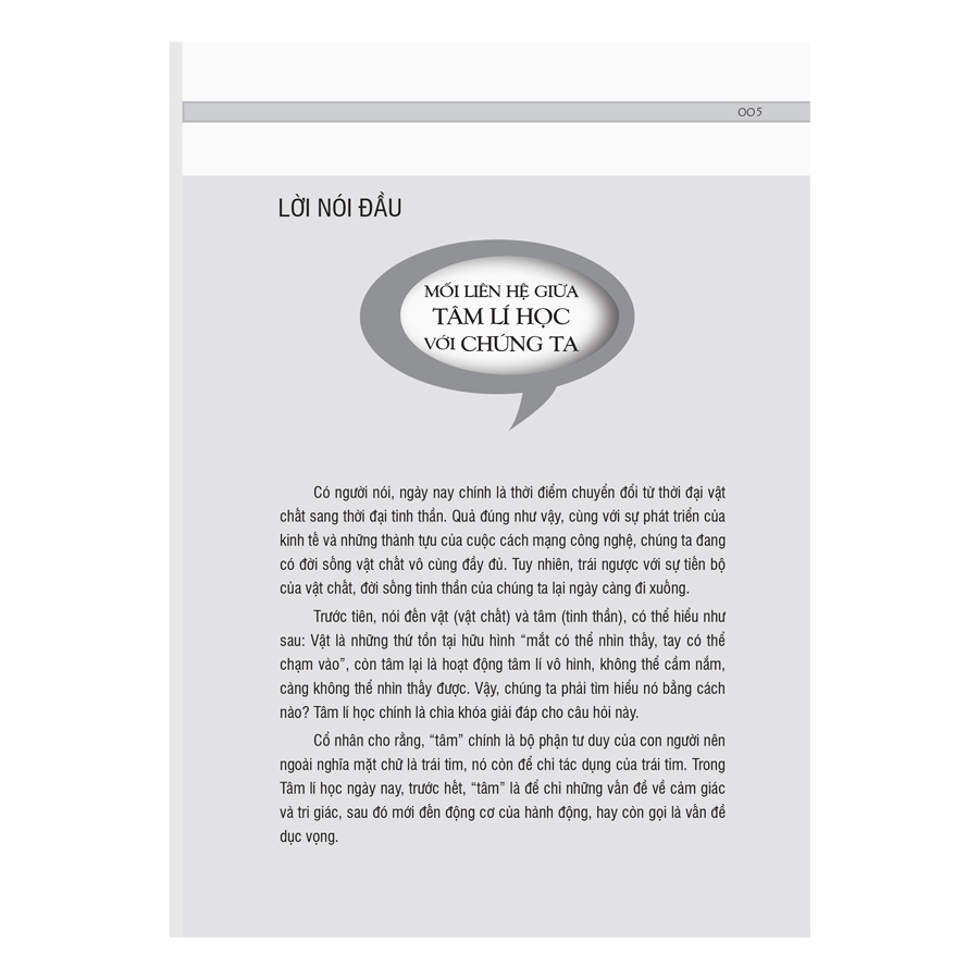 Hi vọng cuốn sách sẽ giúp các bạn độc giả hiểu biết sâu hơn về Tâm lí học và biết cách ứng dụng Tâm lí học vào cuộc sống hằng ngày.