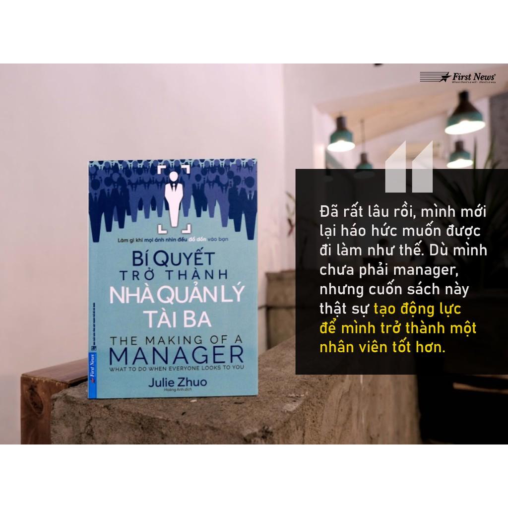 Bí quyết trở thành nhà quản lý tài ba tập hợp những kinh nghiệm của Julie Zhuo trong 10 năm kể từ ngày đầu tiên cô được đề bạt lên vị trí quản lý tại khi mạng xã hội này vẫn còn ít người biết đến. Julie Zhuo đã bắt đầu với một danh sách dài những công việc, từ tuyển dụng cho đến sa thải, từ họp hành cho đến nhắn tin, từ lên kế hoạch cho đến lao vào hỗ trợ… Cô cũng phải đối diện với hàng ngàn câu hỏi, cùng những tình huống không chắc chắn.