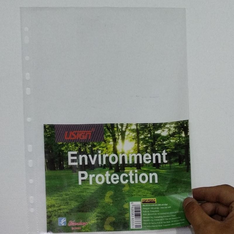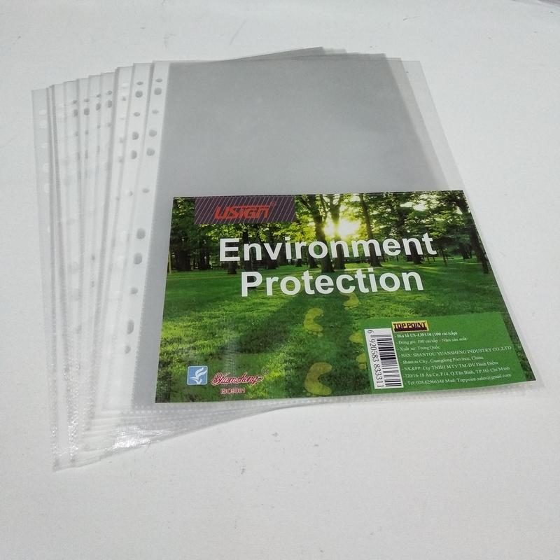 Bìa màu trắng, được đục lỗ bên gáy với chất liệu nilon mỏng trong suốt, giúp bạn dễ dàng sắp xếp và lưu trữ tài liệu.