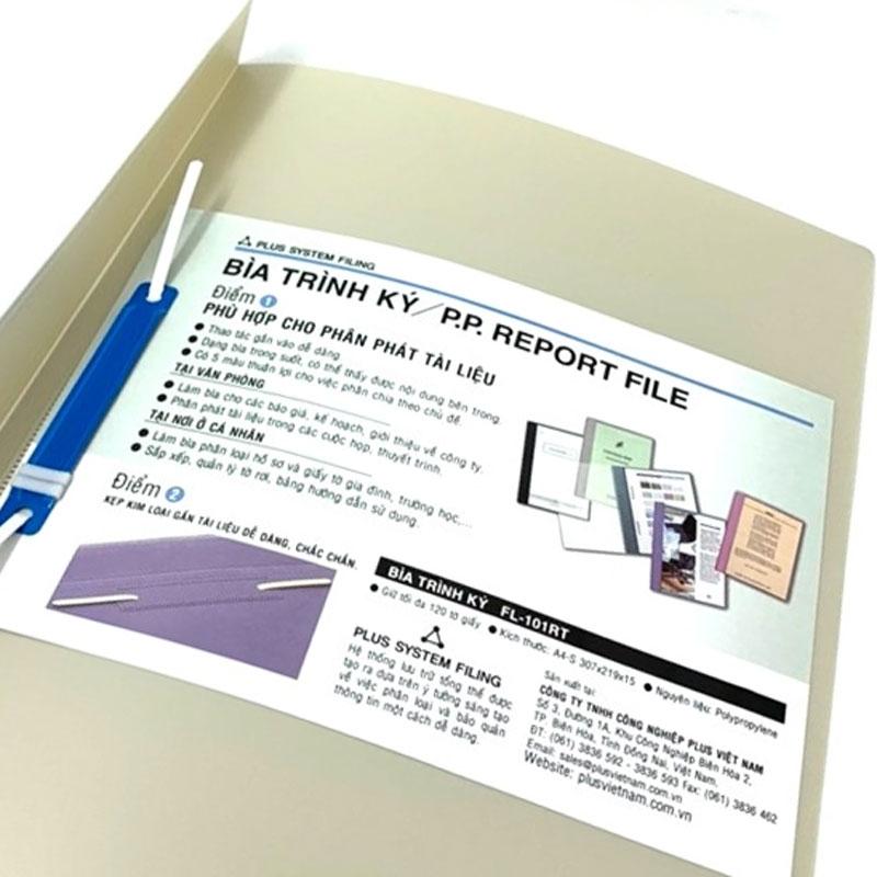 Bìa 1 Kẹp Plus Sản phẩm sử dụng phù hợp với khổ giấy A4. Sản phẩm một mặt nhựa, vỏ ngoài cứng cáp. Kẹp làm bằng inox không han gỉ, có tính đàn hồi cao, kẹp được lượng lớn