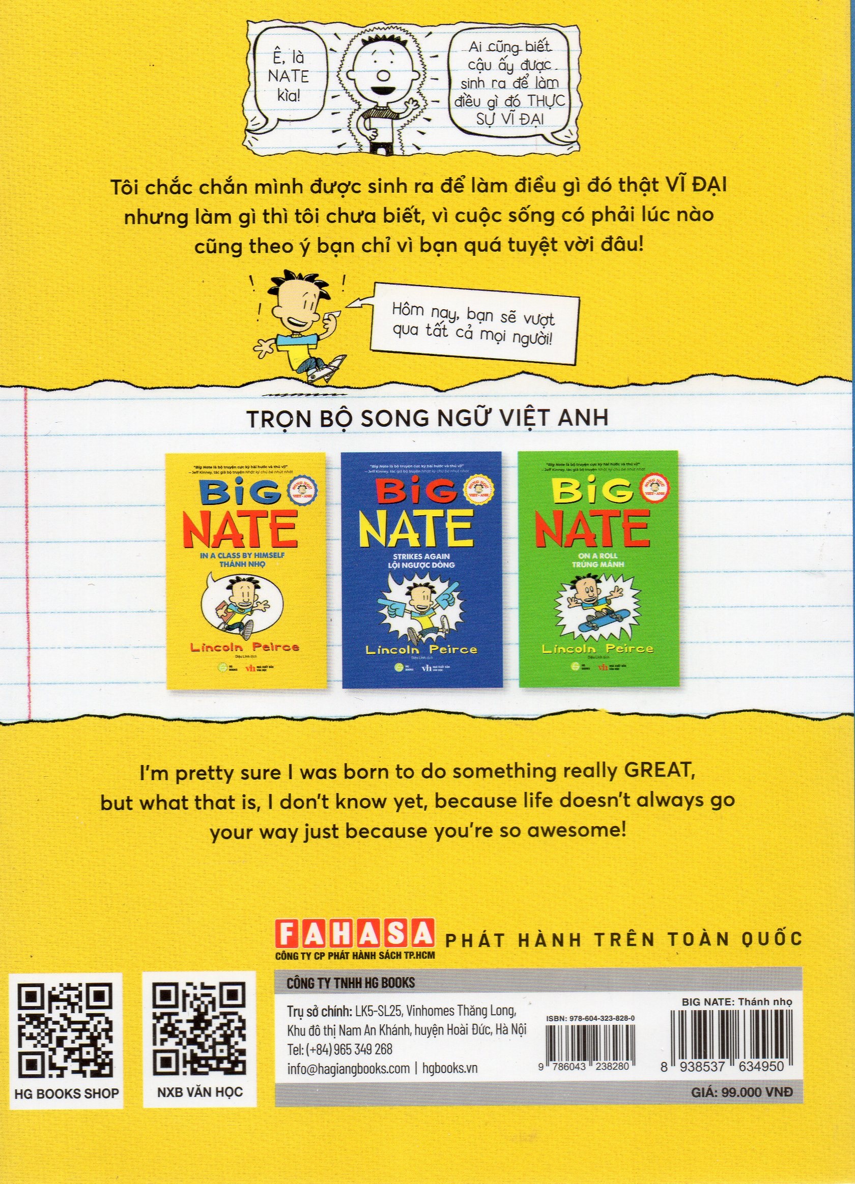 BIG NATE là bộ truyện tranh của nhà văn Mỹ Lincoln Peirce xoay quanh cậu bé Nate Wright, từ chuyện gia đình, bạn bè đến trường lớp cùng ti tỉ những rắc rối hài hước của cậu. Nếu ai đã từng say mê “Nhật ký chú bé nhút nhát” của Jeff Kinney thì không thể bỏ qua bộ truyện “mặn mòi” này với những hình vẽ ngộ nghĩnh cùng lời văn hóm hỉnh hết nước chấm đã làm nên tên tuổi của một Nate “Quậy” chính hiệu.
