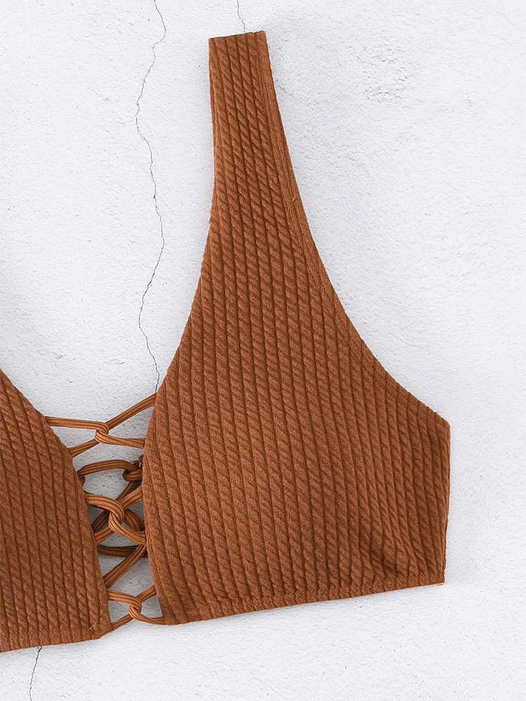 Bikini Tam Giác Kèm Khăn Lưới Chất liệu Polyester Đây là chất liệu không quá xa lạ đối với may đồ bơi nữ. Sợi Polyester rất nhẹ, có khả năng chống thấm và khô nhanh.