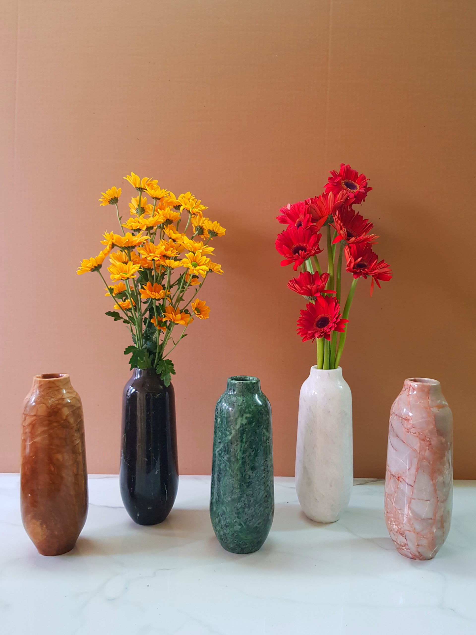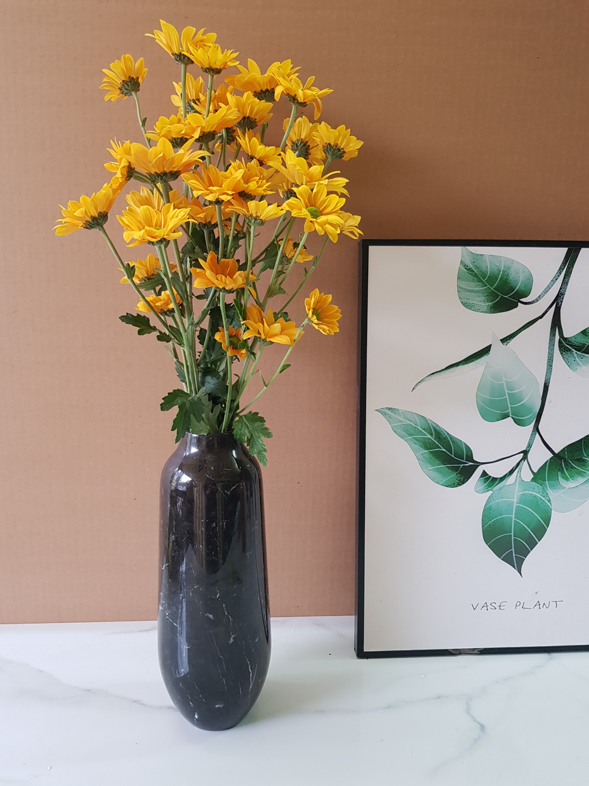 ✨Bình cắm hoa bằng đá tự nhiên màu đen chỉ trắng BHD007