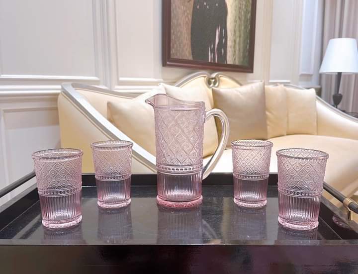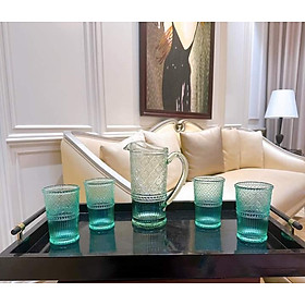 Chi tiết sản phẩm: • 01 Bình nước dung tích 1.9L (Pitcher) • 04 Ly thủy tinh 340ml (Tumblers) Tổng cộng 5 món tiện dụng Ưu điểm nổi bật: • Thủy tinh borosilicate cao cấp,