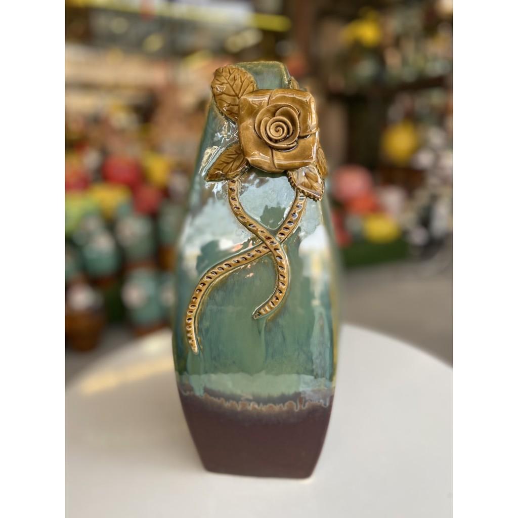 Bình hoa khắc hoa sen cổ men xanh vàng gốm Bát Tràng  Lọ lộc bình rồng đắp nổi cao cấp Bát Tràng
