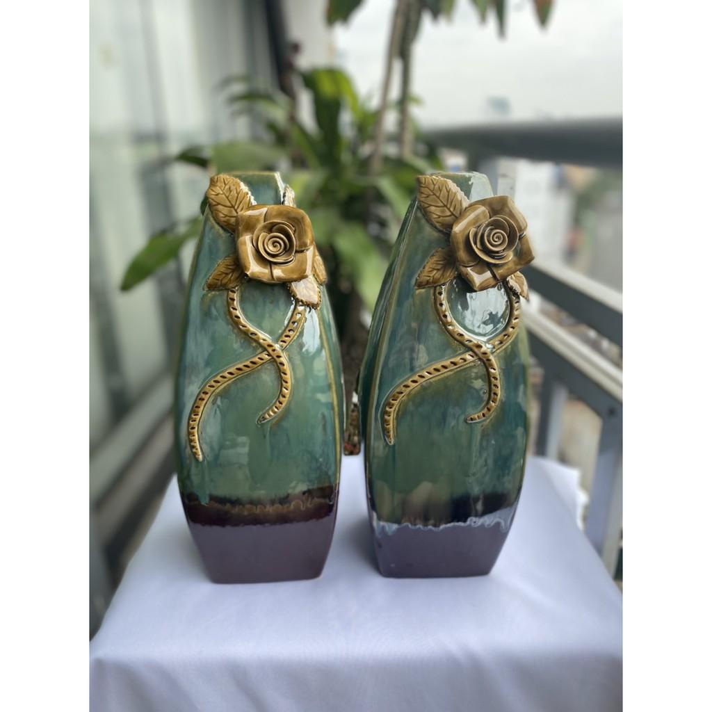 Combo bộ đôi bình hoa - Dáng chữ nhật  - Gốm sứ Bát Tràng - Trang trí căn nhà - Gốm sứ chuyên Decor  Lọ hoa gốm sứ Bát Tràng cao cấp men hoả biến kính cao 36cm