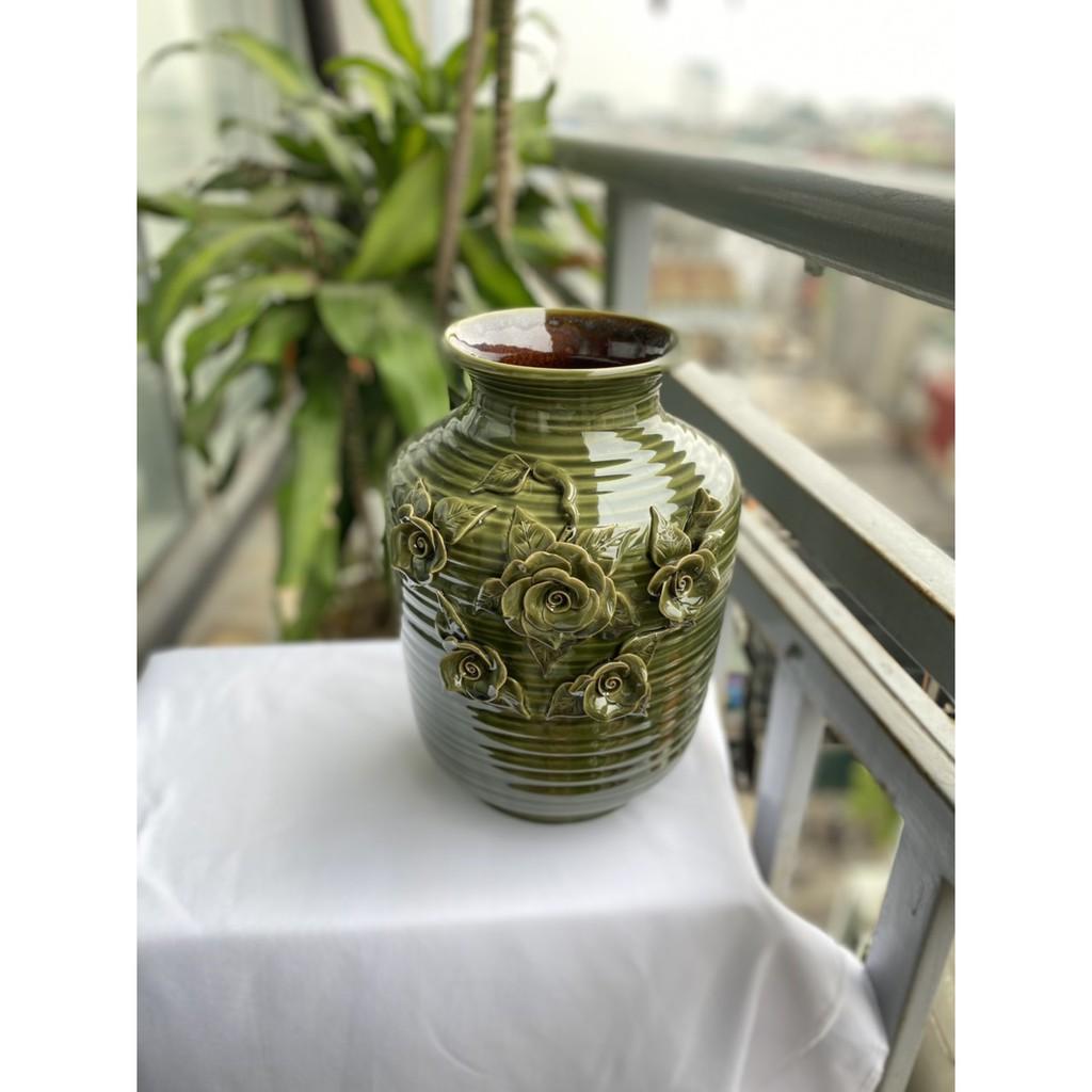 Bình hoa cao cấp Bát Tràng, hàng chuẩn loại 1, dáng chum họa tiết đắp nổi được thực hiện thủ công 100% bởi bàn tay lành nghề của các nghệ nhân làng nghề. Sản phẩm