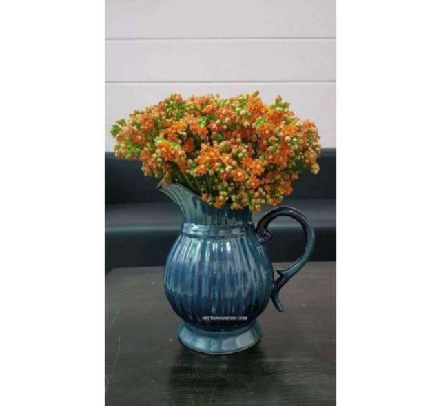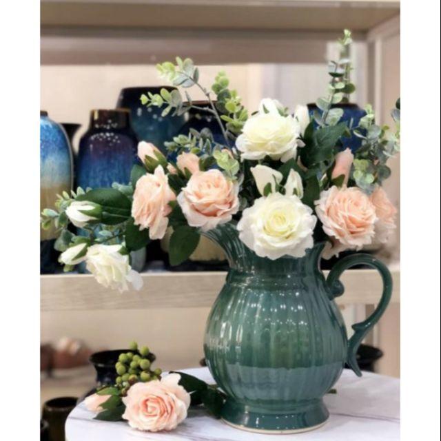 Bình hoa hồng trà hoa lụa cao cấp để bàn trang trí phòng khách, decor nhà hàng, spa, khách sạn đẹp mắt sang trọng  Lọ hoa dáng phích vai vuông vẽ hoa loa kèn Gốm Sứ G&T