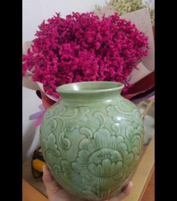 Bình hoa khắc hoa sen cổ men xanh vàng gốm Bát Tràng  Lọ lộc bình rồng đắp nổi cao cấp Bát Tràng