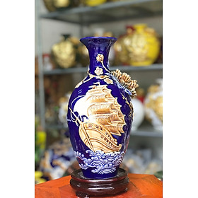 Bình hút tài lộc thuận buồm xuôi gió vẽ vàng 18k men xanh vân đá H25, H30 cm gốm sứ Bát Tràng tặng kèm đế gỗ - NHẤT MỆNH - NHÌ VẬN - TAM PHONG