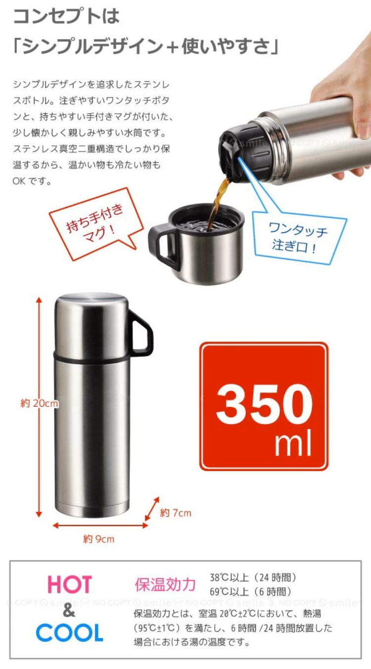 - Dung tích: 355 ML - Nắp Closeable Press-In chống tràn và hạn chế tối đa tình trạng bắn nước - Thép không gì cao cấp giữ nguyên hương vị - Tay cầm công thái