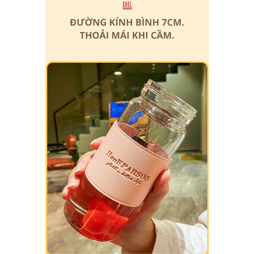 - Thân thiện với môi trường Thông số bình thủy tinh đựng nước trái cây cao cấp bọc da Mitomo 500ml