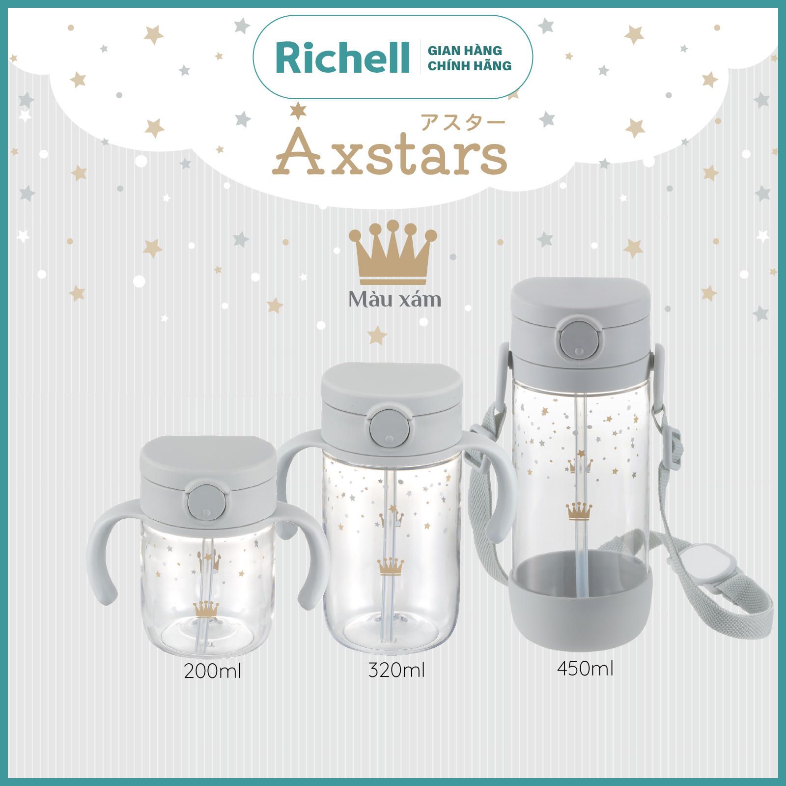 Giới thiệu Là bộ sưu tập các loại Cốc và Bình của thương hiệu Richell Nhật Bản, nay đã có mặt tại Việt Nam. Các sản phẩm thuộc AXSTARS có các chức năng, công dụng nâng cấp phù hợp với nhu cầu trong từng giai đoạn phát triển của bé, từ 6 tháng trở lên. Nếu cần tư vấn thêm, ba mẹ vui lòng liên hệ với Gian hàng Chính hãng "Richell Vietnam Official" nhé.