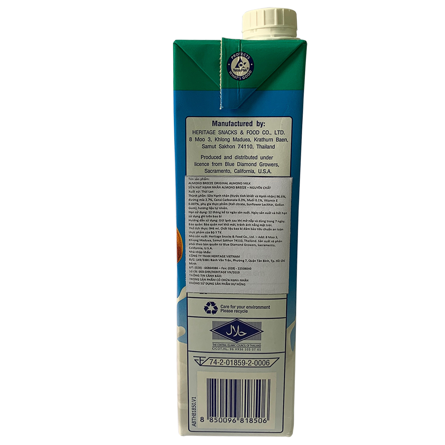 Mua tại TiktokALMOND BREZZE tự hào là sản phẩm sữa hạt hạnh nhân có SẢN LƯỢNG TIÊU THỤ SỐ 1 TẠI MỸ. Sữa hạt hạnh nhân ALMOND BREEZE (Sản phẩm của Tập đoàn BLUE DIAMOND – Mỹ) là thức uống bổ dưỡng hàng ngày tốt cho sức khỏe. Đặc biệt THÍCH HỢP VỚI KHÁCH HÀNG BỊ DỊ ỨNG VÀ KHÔNG DUNG NẠP ĐƯỢC ĐƯỜNG SỮA (Lactose); những người ăn chay; phụ nữ mang thai và cho con bú với thành phần dưỡng chất giàu Canxi và Vitamin E; không Cholesterol và không chứa các thành phần từ đậu nành và sữa. Chiết xuất hạnh nhân lên đến 96,6% ALMOND BREEZE NGUYÊN CHẤT giúp bạn cảm nhận trọn vẹn tinh túy chất lượng hạnh nhân từ Mỹ. Sữa hạt hạnh nhân ALMOND BREEZE là sản phẩm sữa hạt tốt cho sức khỏe của bạn và gia đình bạn vì:
