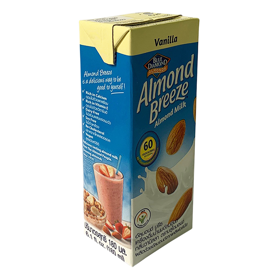Sữa hạt hạnh nhân ALMOND BREEZE (Sản phẩm của Tập đoàn BLUE DIAMOND – Mỹ) là thức uống bổ dưỡng hàng ngày tốt cho sức khỏe. Đặc biệt THÍCH HỢP VỚI KHÁCH HÀNG BỊ DỊ ỨNG VÀ KHÔNG DUNG NẠP ĐƯỢC ĐƯỜNG SỮA (Lactose); những người ăn chay; phụ nữ mang thai và cho con bú với thành phần dưỡng chất giàu Canxi và Vitamin E; không Cholesterol và không chứa các thành phần từ đậu nành và sữa.