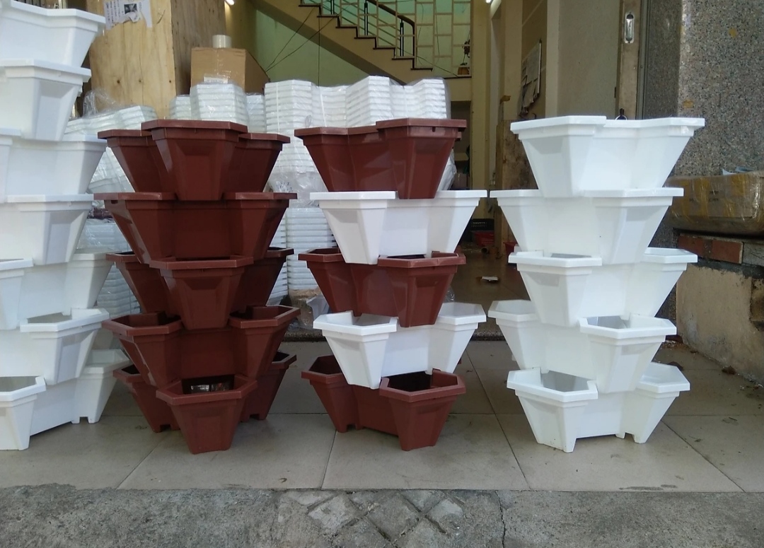 Hoặc có thể dùng như tháp trồng thủy canh (khách phải mua thùng và ống tự lắp đặt riêng).