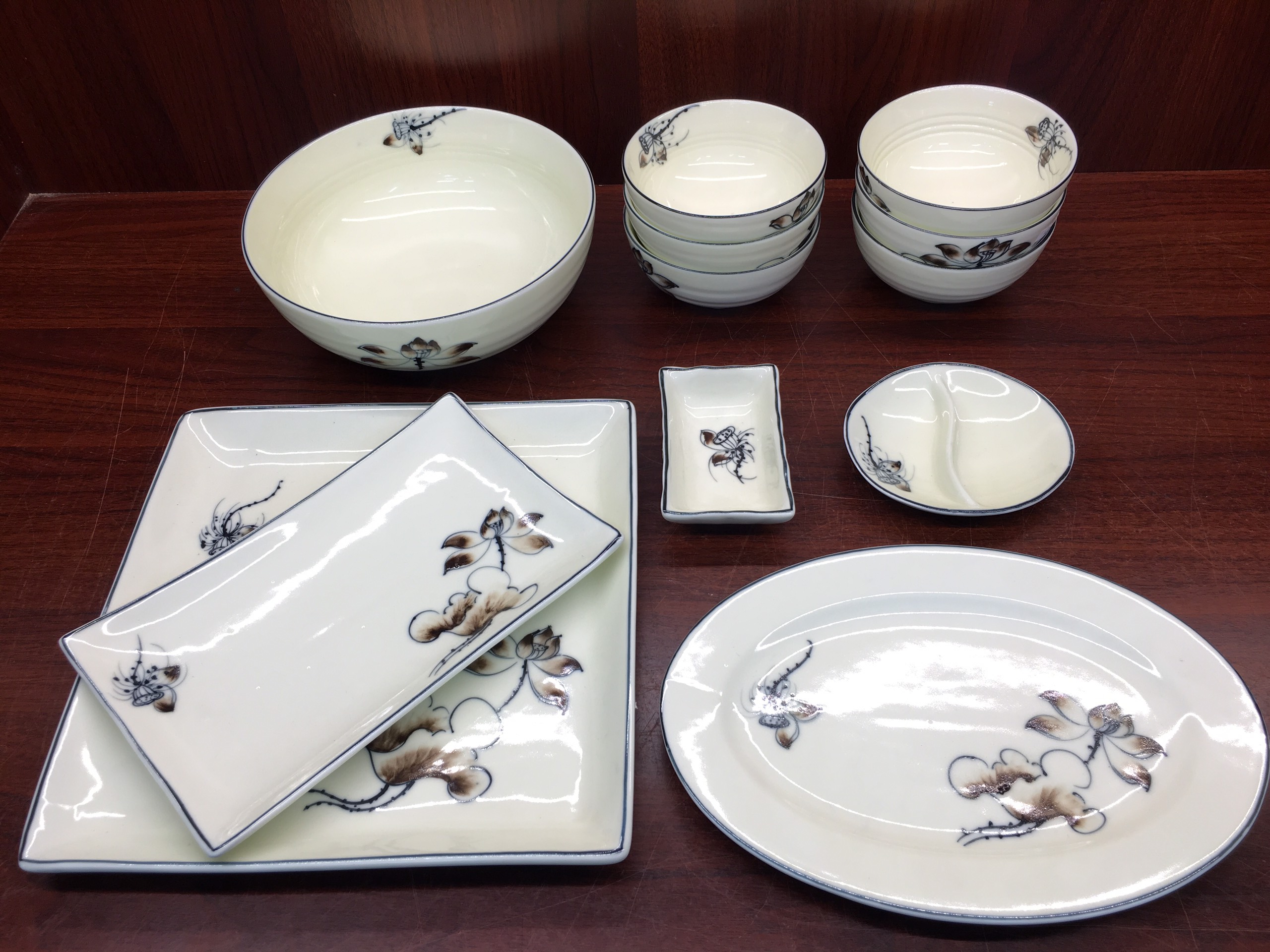 Mua tại TiktokChi tiết Bộ bàn ăn 12 sản phẩm Bát Tràng vẽ hoa súng cao cấp gồm :