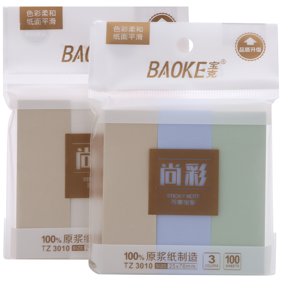 ✨Bộ 2 Xấp Giấy Note 3 Màu Baoke 3010 - 25 x 76 mm/Màu (100 sheets/Xấp) - Giao Mẫu Ngẫu Nhiên