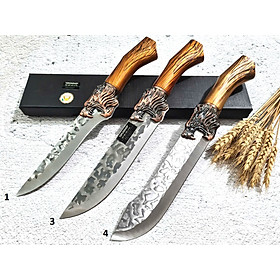 D SỐ 1 : TỔNG DÀI : 29cm, LƯỠI: 14cm,RỘNG : 4.5cm, dày: 3mm, NẶNG : 1.5 lạng, CHẤT liệu lưỡi: 4Cr13MOV (thép 4 crom 13 molypden vanadi).Chất liệu CÁN: nhựa abs xịn . khâu đầu rồng và chuôi bằng thép 4cr13