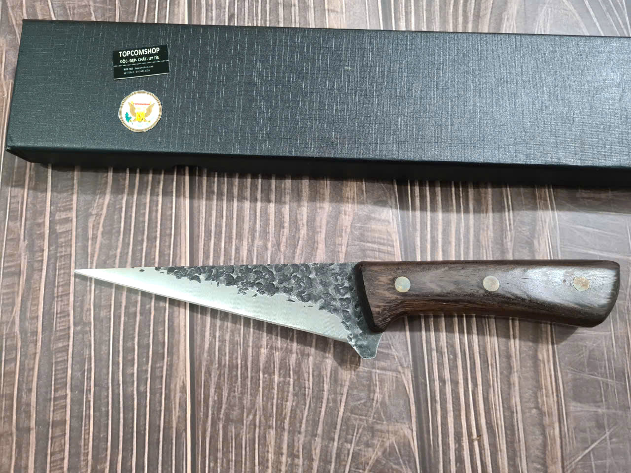 D SỐ 1 : TỔNG DÀI : 27cm, LƯỠI: 14cm,RỘNG : 2.3cm, dày: 2.5mm, CHẤT liệu lưỡi: 5Cr15MOV (thép 5 crom 15 molypden vanadi).Chất liệu CÁN: gỗ Cánh gà,.NẶNG : 1.5 lạng