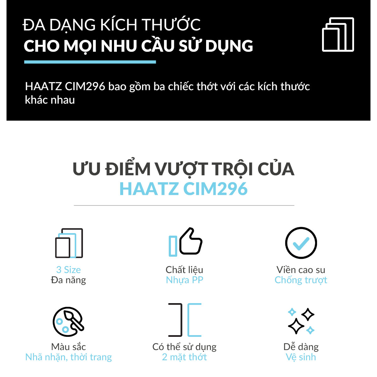 - Thớt nhựa Haatz làm từ nhựa PP nguyên sinh sx theo công nghệ Microban giúp ngăn ngừa vi khuẩn sinh sôi