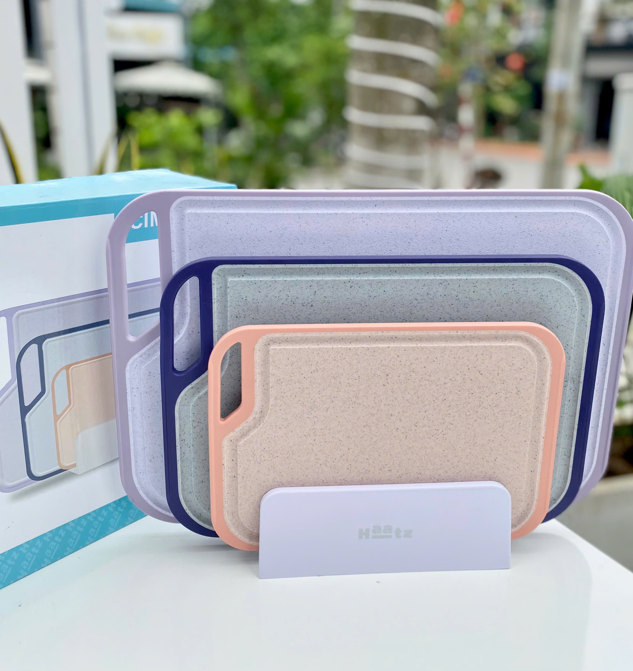 Bộ 3 thớt nhựa kháng khuẩn đa năng Haatz Hàn Quốc CIM296 kèm giá đỡ - Zalo ngay 0986588655
