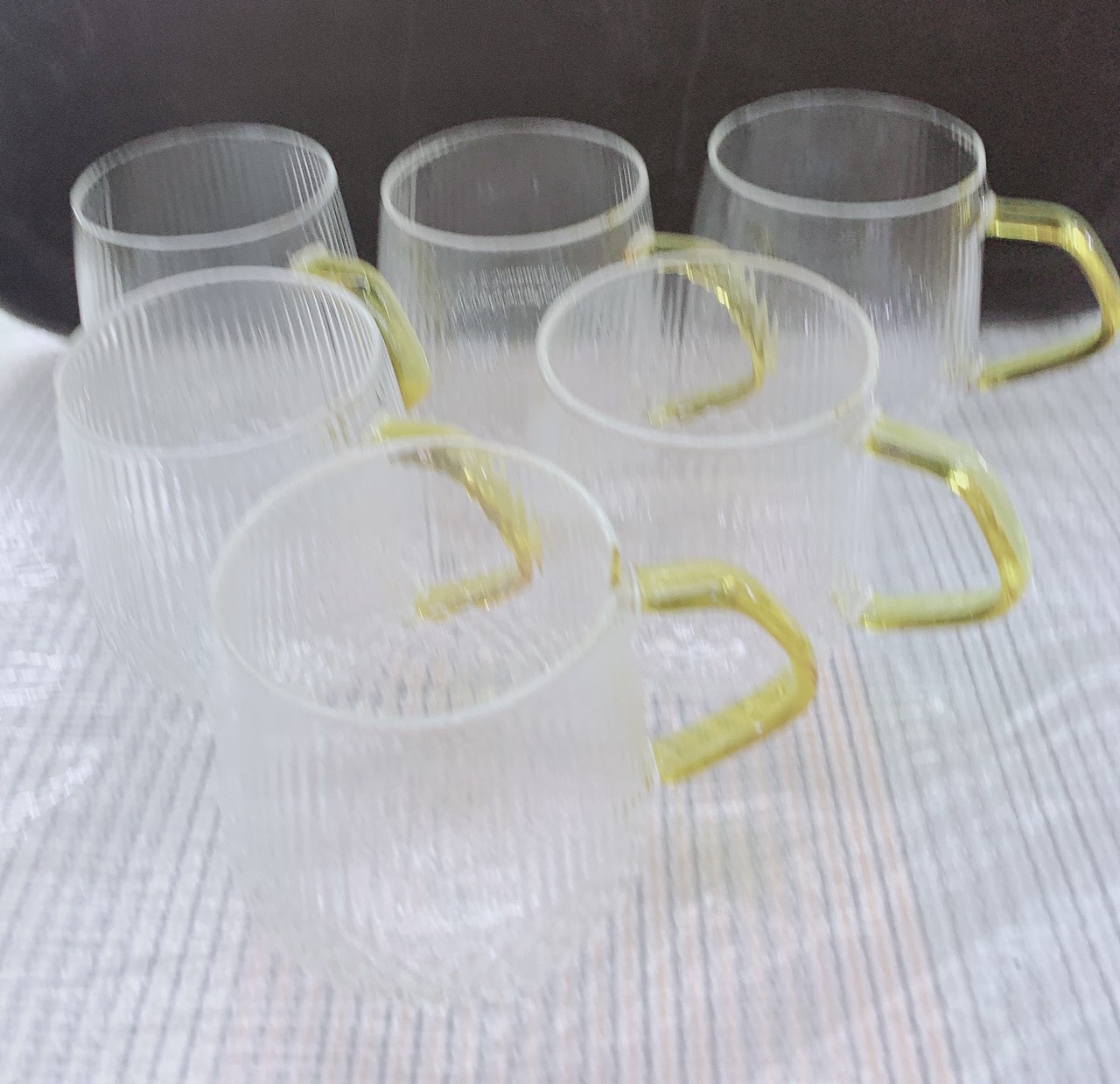 ✨BỘ 6 CỐC THỦY TINH CHỊU NHIỆT LÊN TỚI 400 ĐỘI C QUAI VÀNG CAO CẤP CRYSTSAN 260ml - ANTH421