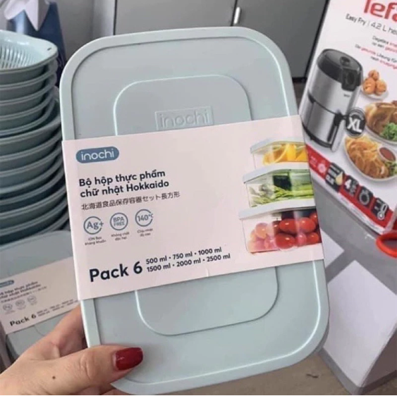 #short Bộ 6 hộp thực phẩm chữ nhật Hokkaido I Gia dụng cao cấp I Inochi chính hãng