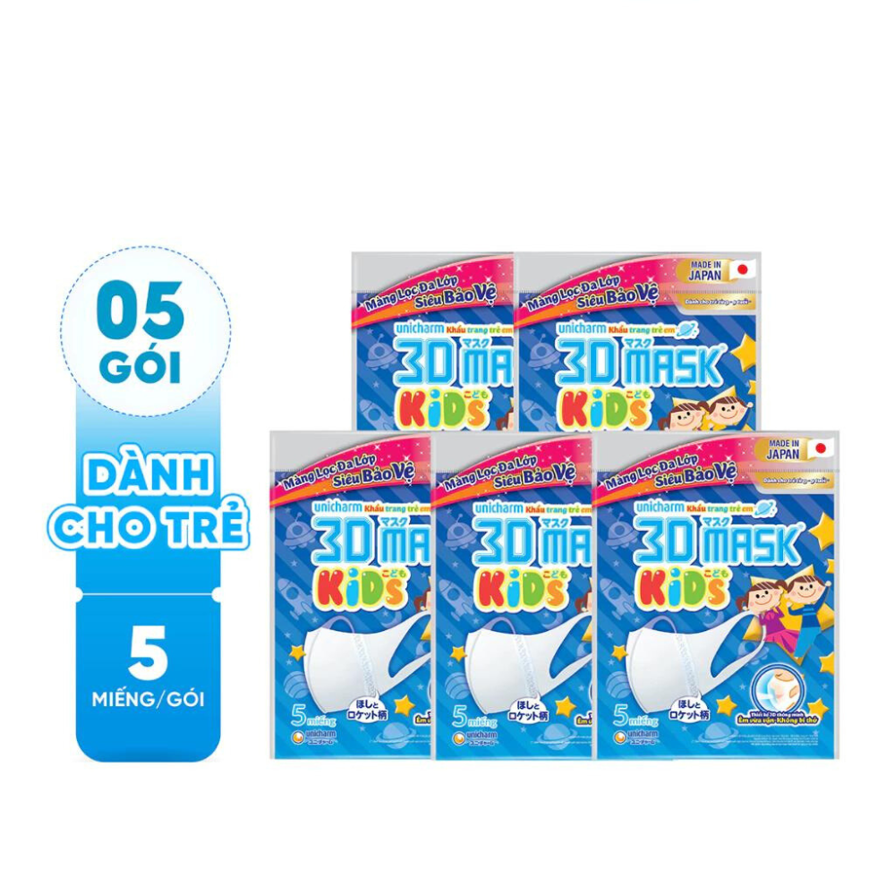 Bộ 5 Khẩu trang dành cho bé Unicharm 3D Mask Kid gói 5 cái