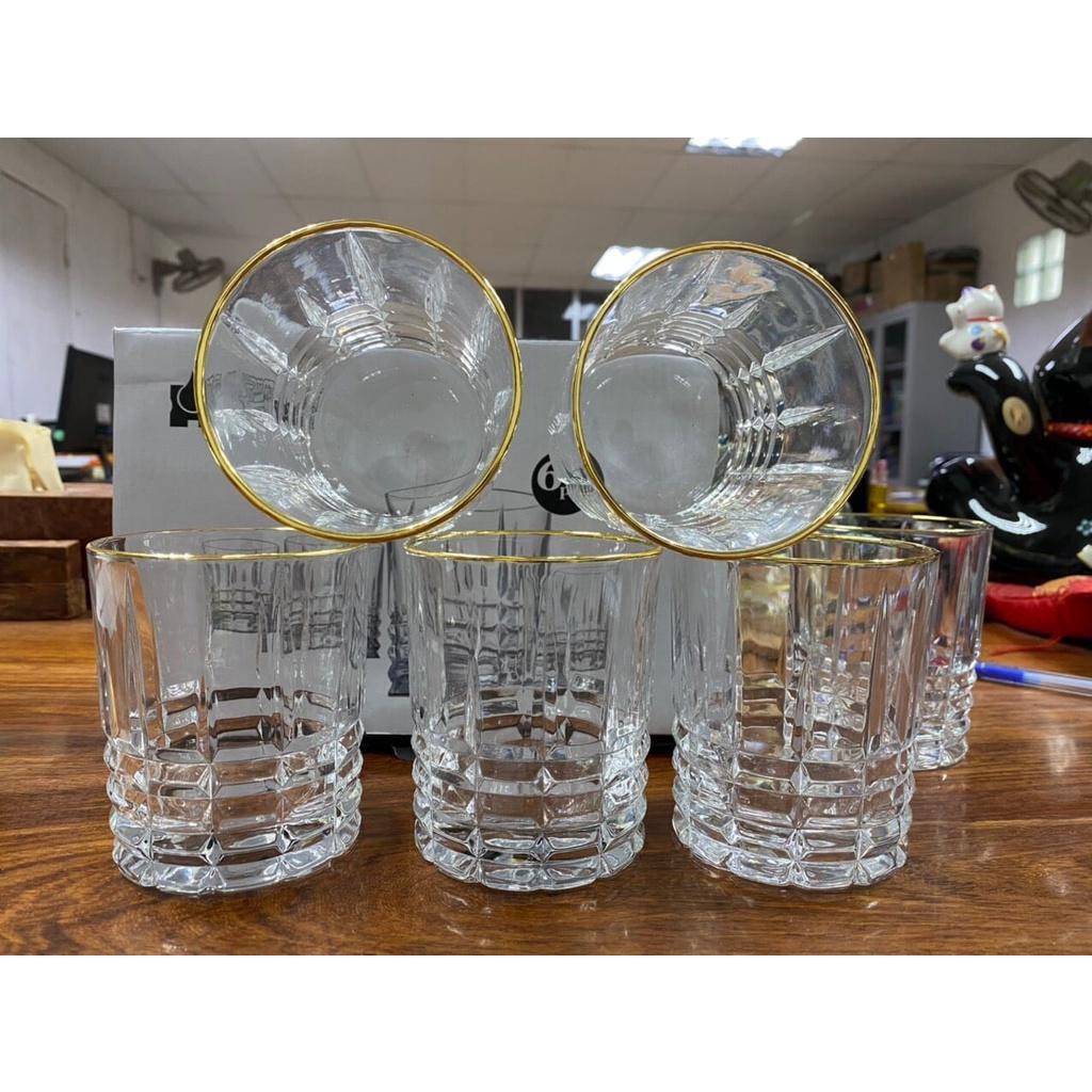 ✨Bộ 6 ly thủy tinh chịu nhiệt uống nước viền vàng vân đáy