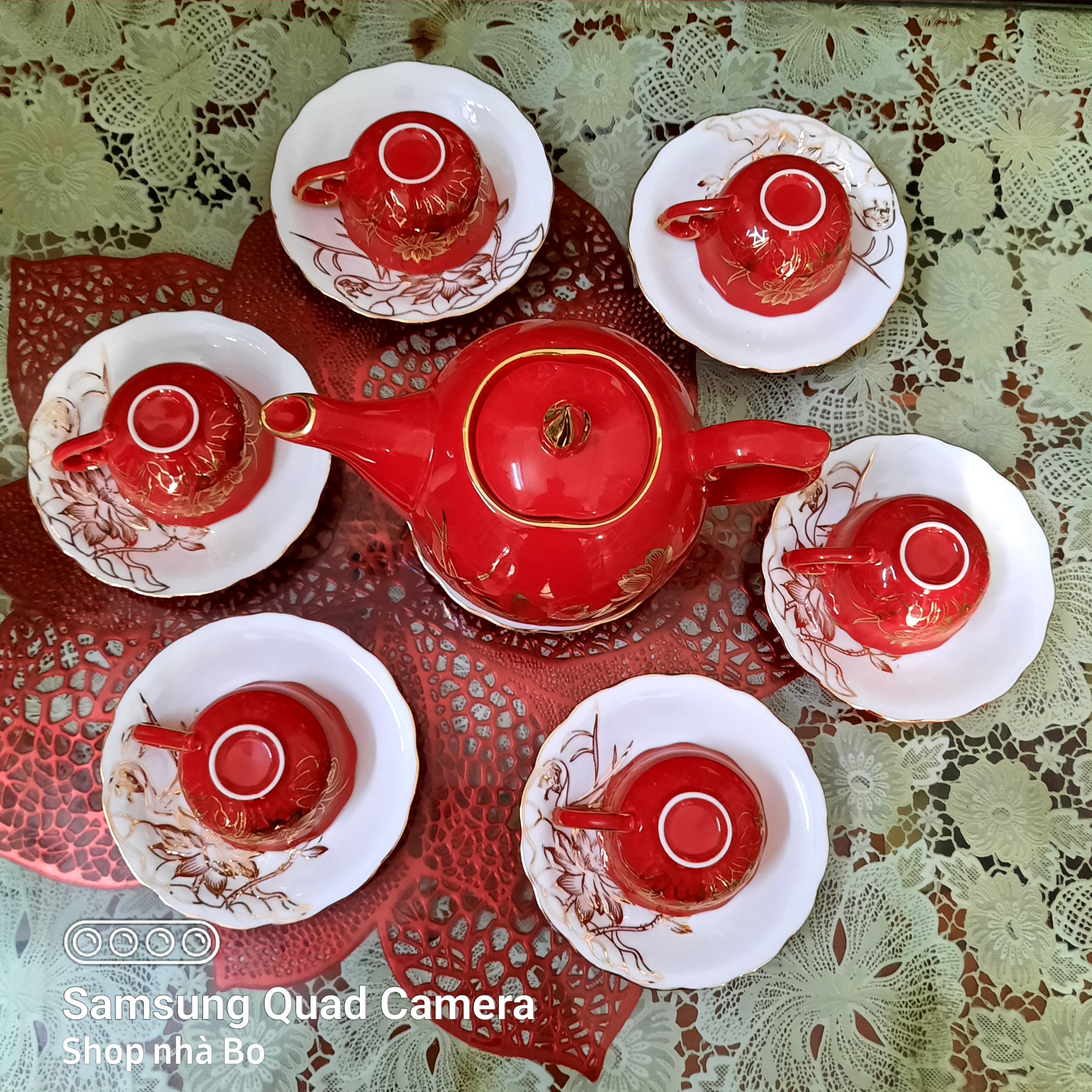 Bộ ấm chén Bát Tràng cao cấp mẫu đơn đỏ vẽ sen vàng Bộ ấm chén BátTràng là bộ ấm chén được làm từ làng nghề gốm sứ truyền thống Bát Tràng. Một trong những