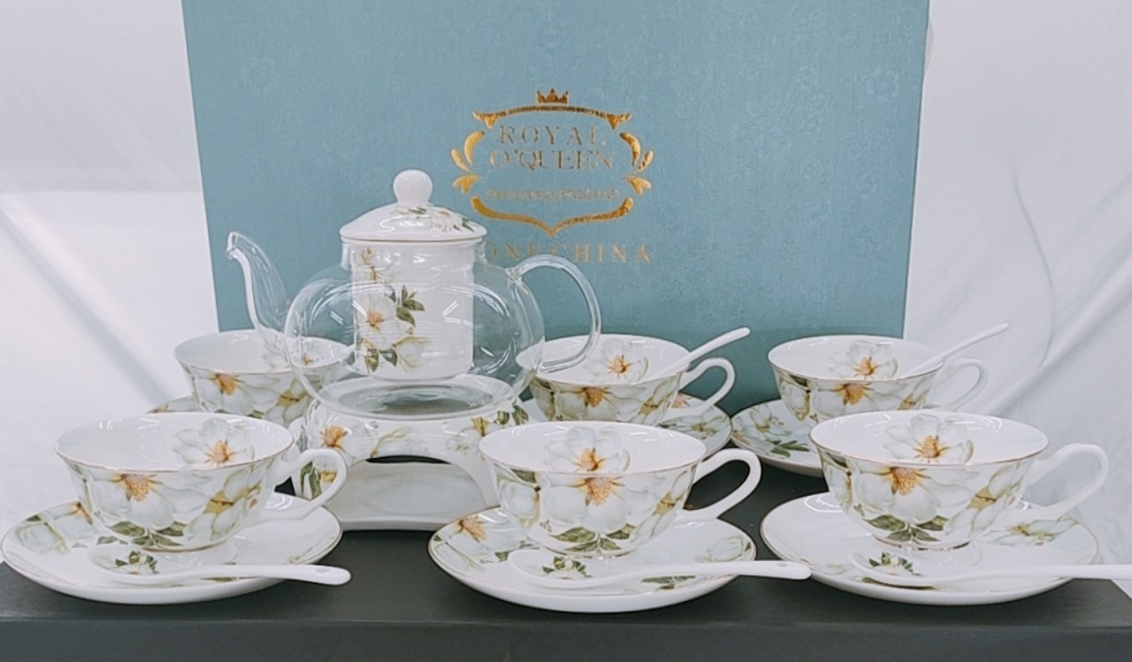 Bộ ấm chén chất liệu sứ xương cao cấp với thiết kế đẹp ,tiện dụng chất liệu cao cấp,dễ bảo quản ,vệ sinh.