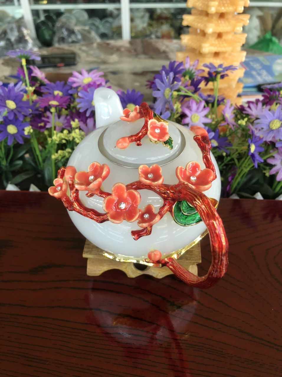 ✨Bộ ấm trà chạm hoa đào đá bạch ngọc