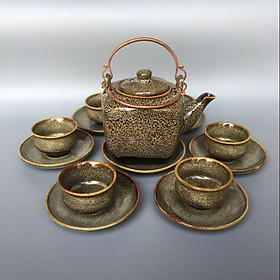 Ấm trà đẹp , ấm chén giả cổ men rạn, ấm chén bọc đồng Dung tích: 630ml Chất liệu: Gốm men giả cổ, men rạn bọc đồng Bộ ấm chén bọc đồng cao cấp là