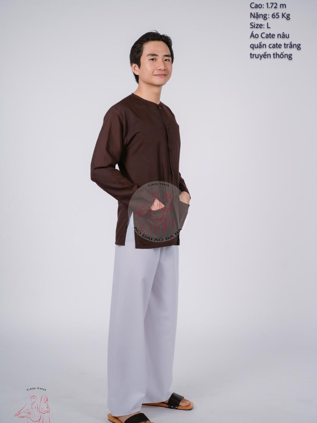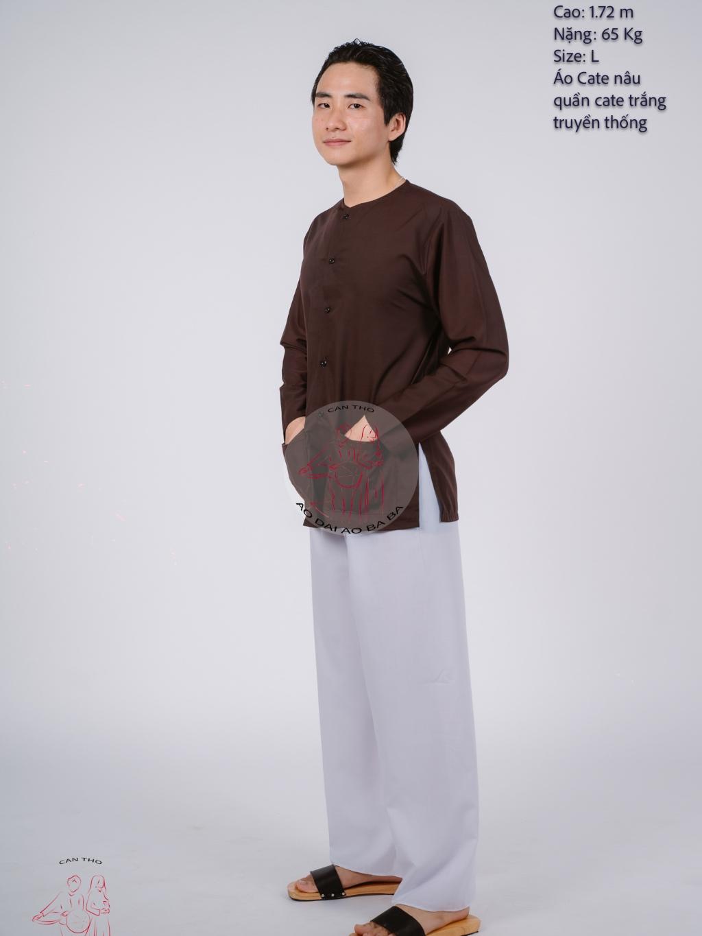 ✨Bộ áo bà ba nam phối áo cate nâu+ Quần cate trắng - Có bộ bà ba Bigsize