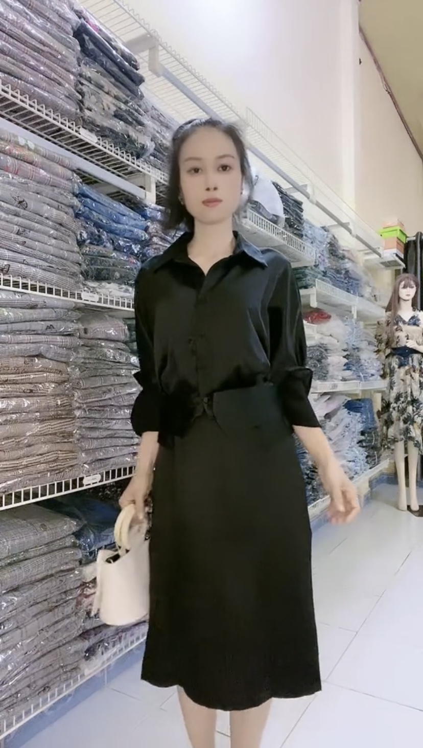 ✨Bộ áo sơ mi kèm váy cao cấp màu đen quý phái Myqlothing.