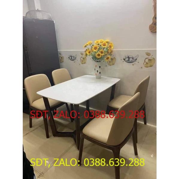 Bộ bàn ăn mặt đá nhập khẩu 4 ghế bọc da sang trọng - BÀN ĂN GIÁ RẺ Hotline: 0788.050.060