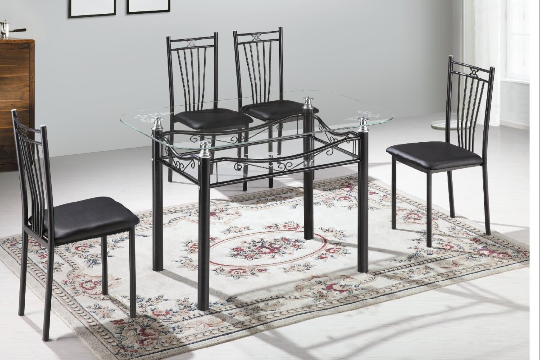 Kết cấu khung chân bàn và khung ghế là chất liệu sắt sơn tĩnh điện, mặt kính cường lực tạo họa tiết hoa văn đơn giản nhẹ nhàng.