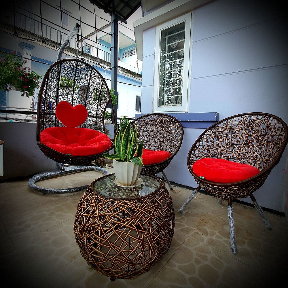 Bộ sản phẩm gồm : 01 bàn mặt kính + 02 ghế + 01 xích đu như hình
